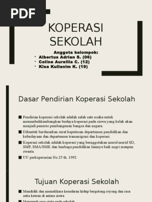 Kedua, para anggota tersebut akan mengadakan rapat anggota, untuk melakukan pemilihan pengurus koperasi ( ketua, sekertaris, dan bendahara ). Meskipun demikian, tak semua badan usaha memiliki nilai dan tujuan keberadaan yang sama. Koperasi sekolah yang didirikan para siswa tidak berbentuk badan hukum akan tetapi mendapat pengakuan sebagai perkumpulan koperasi dari pemerintah. Sekolah ranah konkret dan menyampaikan ranah abstrak laporan tertulis dan terkait dengan lisan tentang simulasi pengembangan implementasi dari yang pengelolaan koperasi dipelajarinya di di sekolah sekolah secara mandiri, bertindak secara efektif dan kreatif, serta mampu menggunakan metode sesuai kaidah keilmuan ki 3: Konsep sisa hasil usaha (shu) koperasi 4.